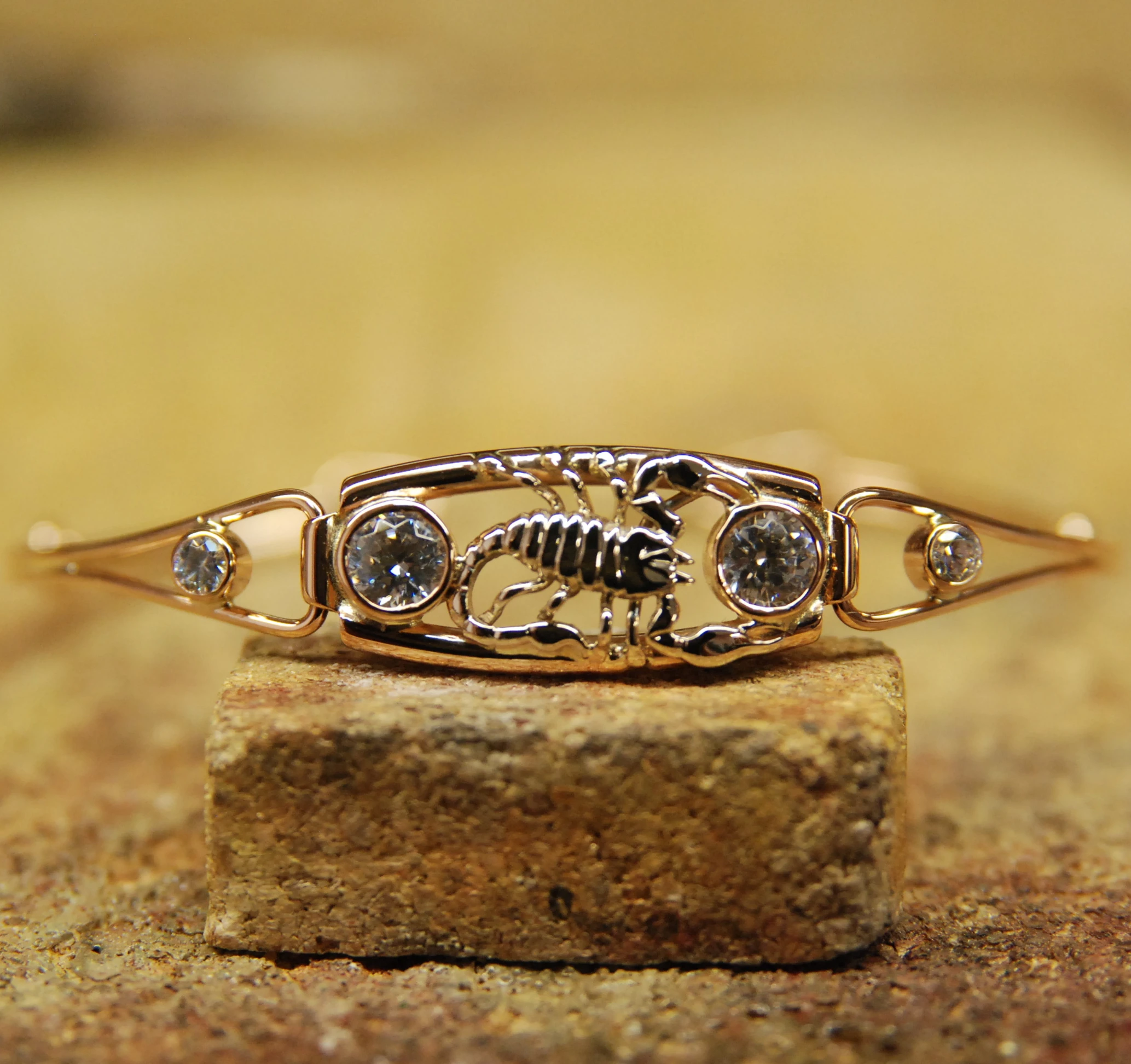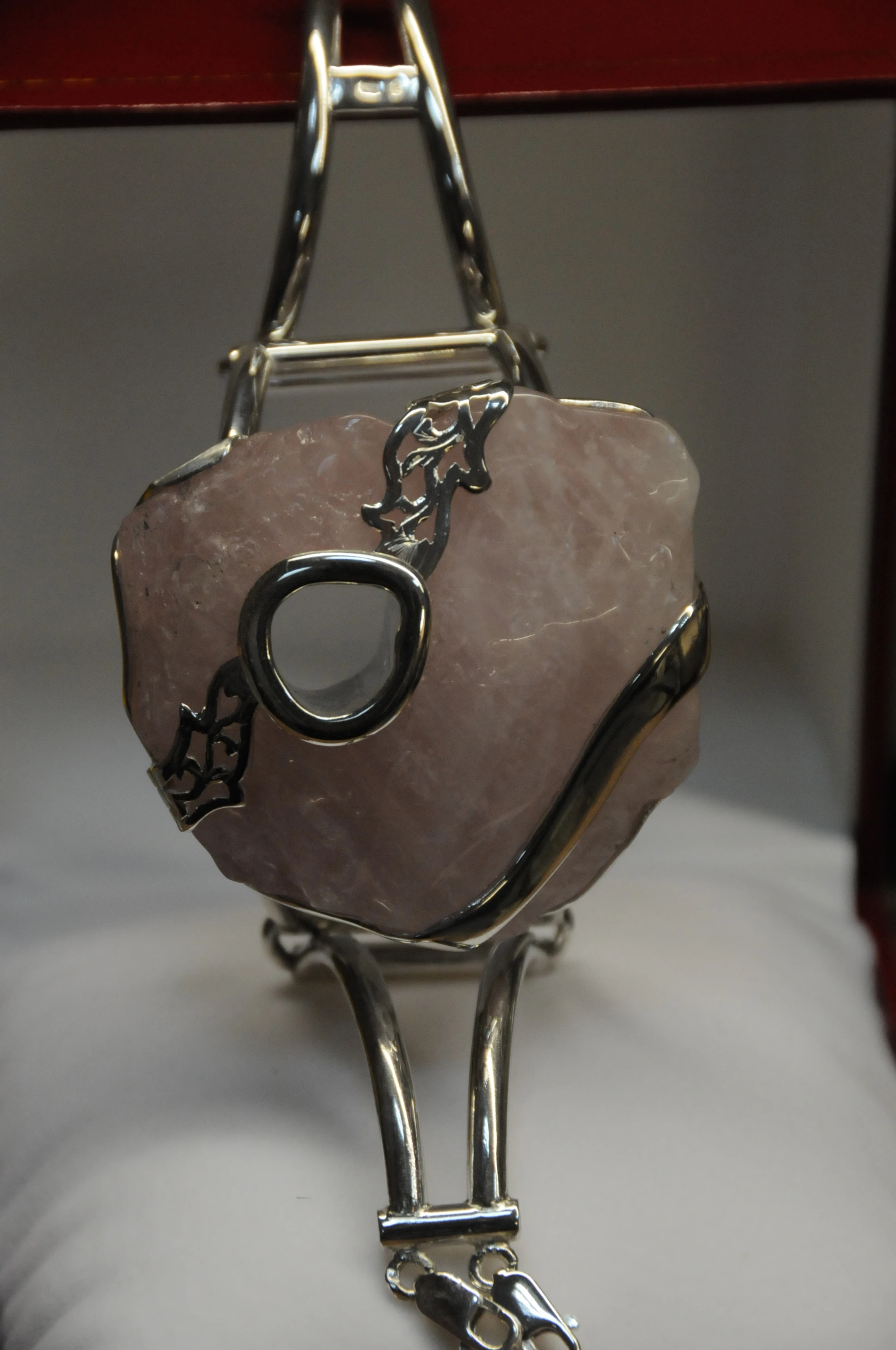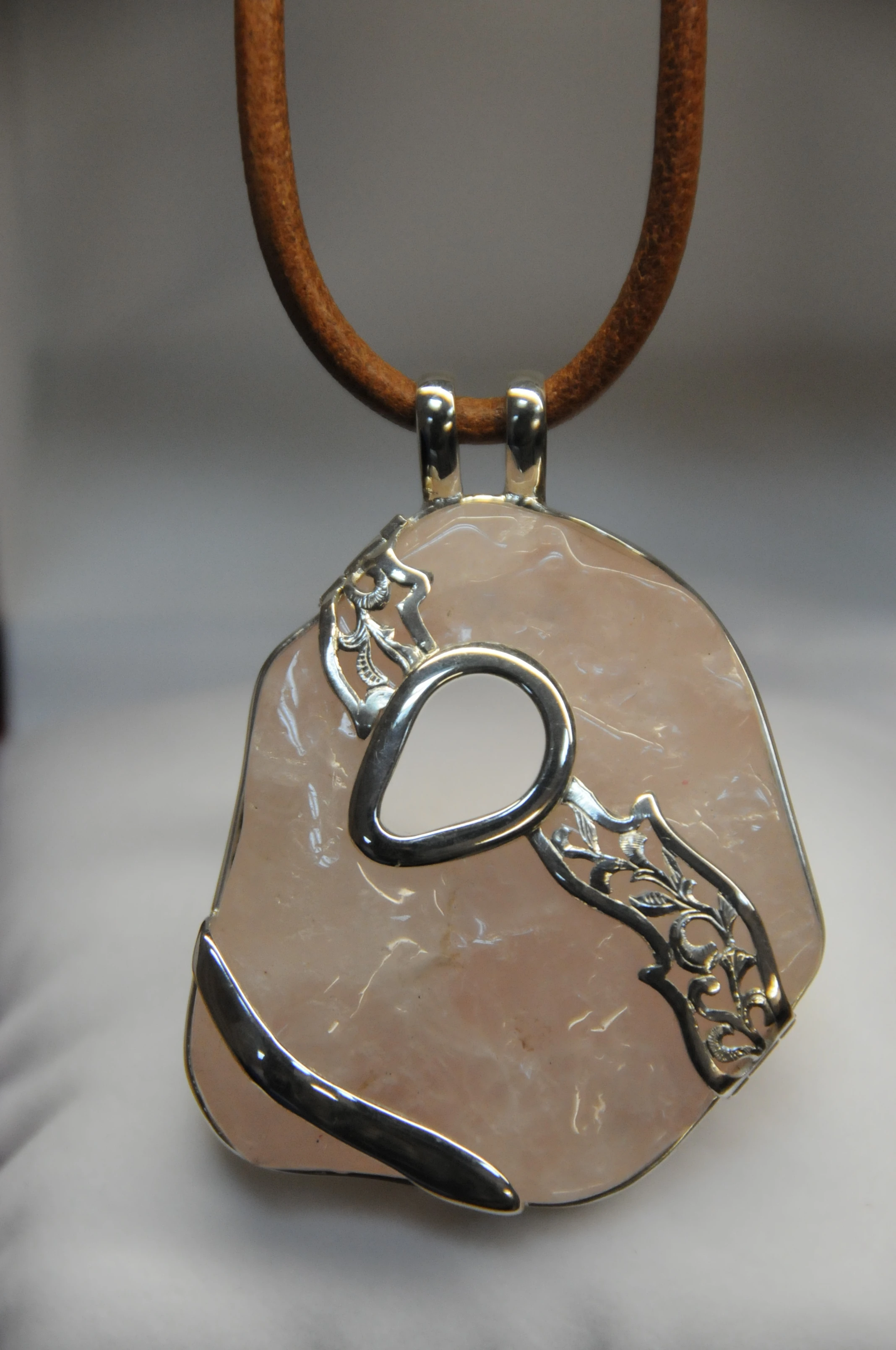 Bransoleta wykonana ze srebra. W kamieniu jest naturalny otwór. Projekt własny.