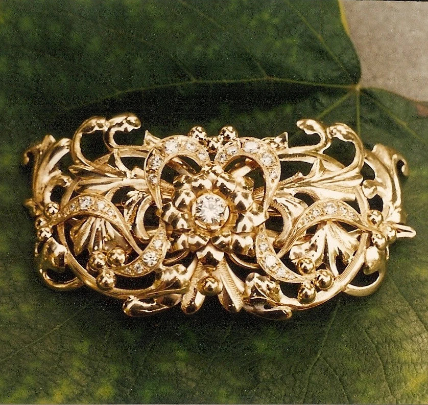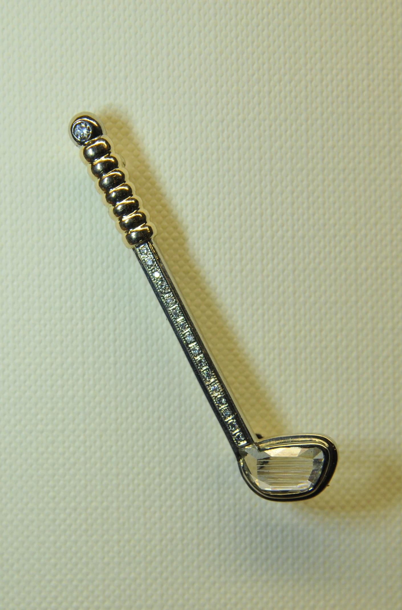 Broszka wykonana ze złota białego i żółtego oraz diamentu i brylantów. Projekt własny.
