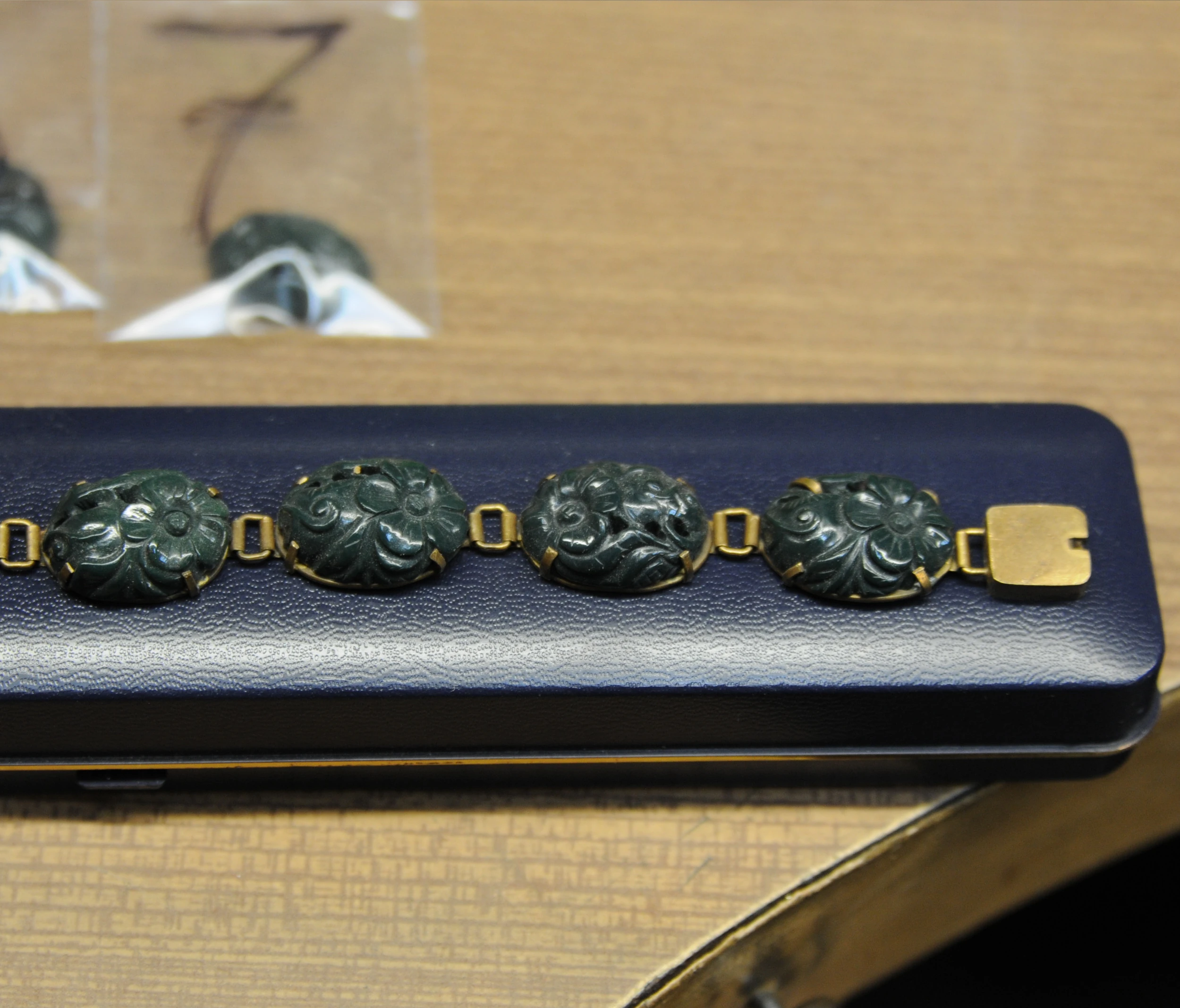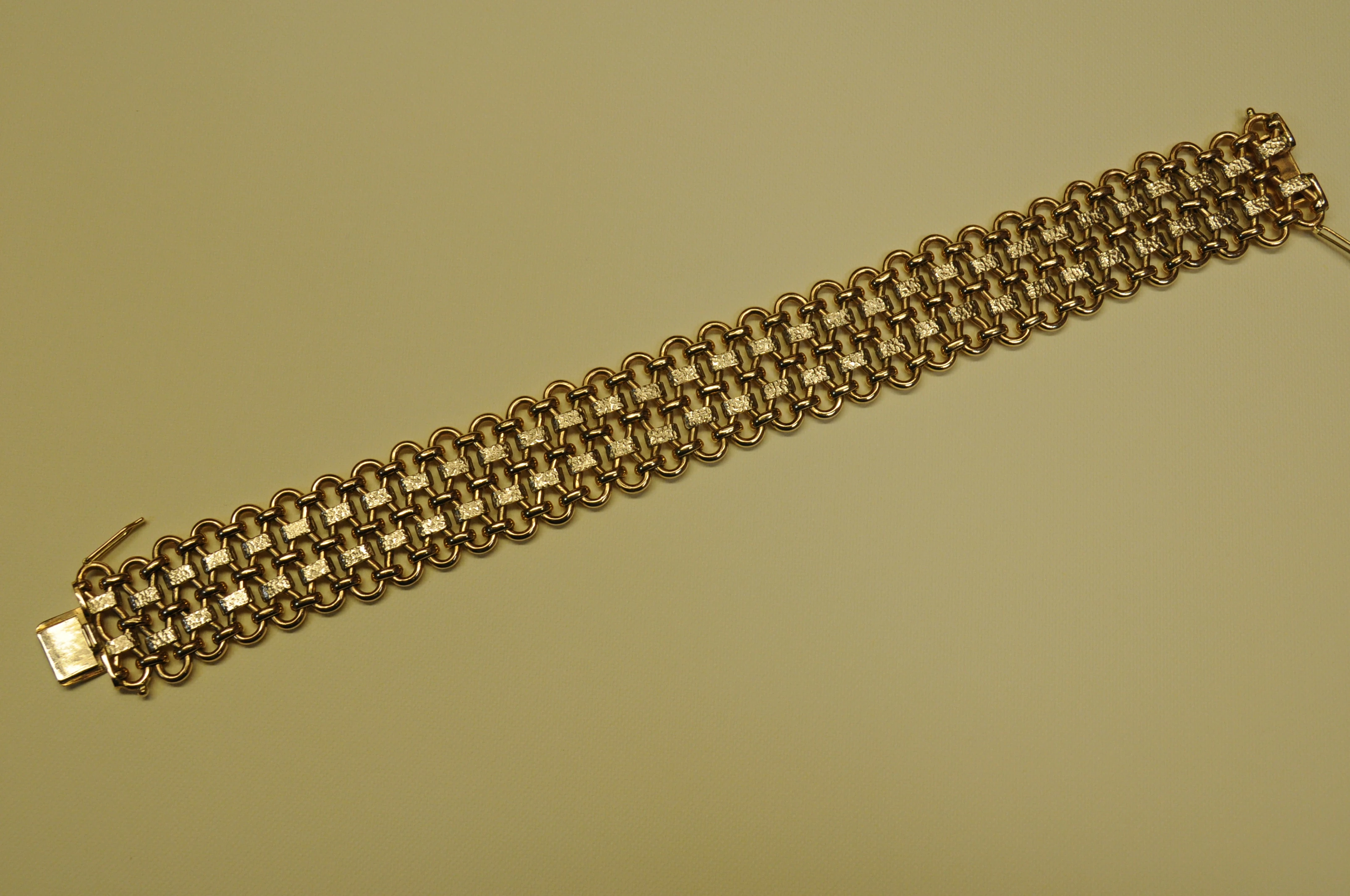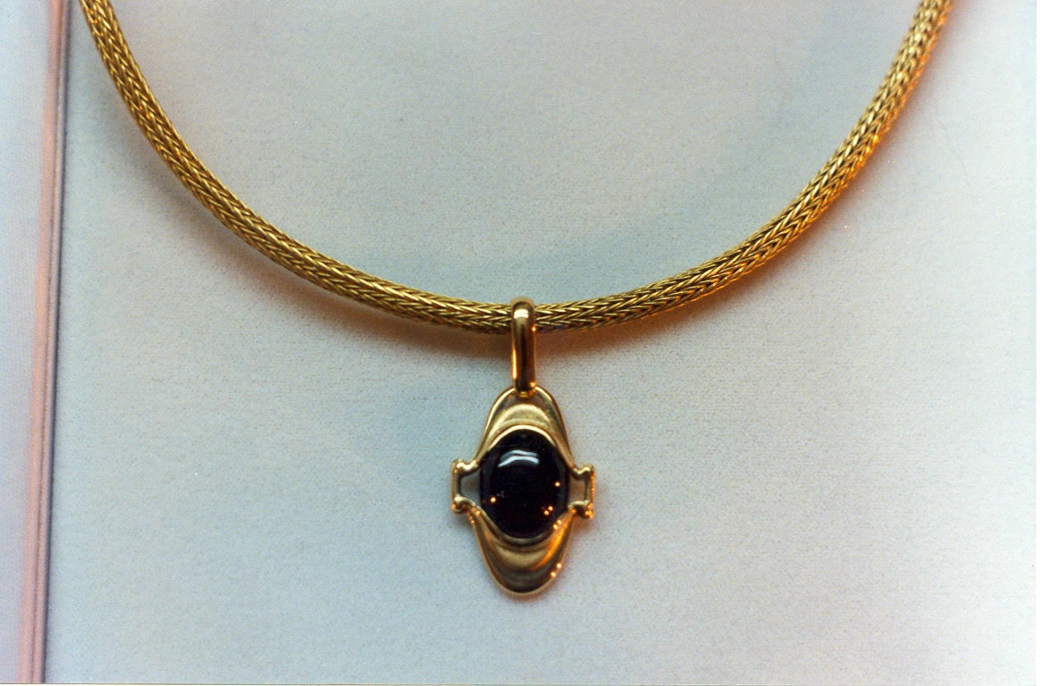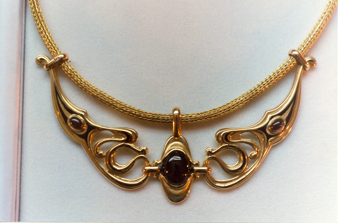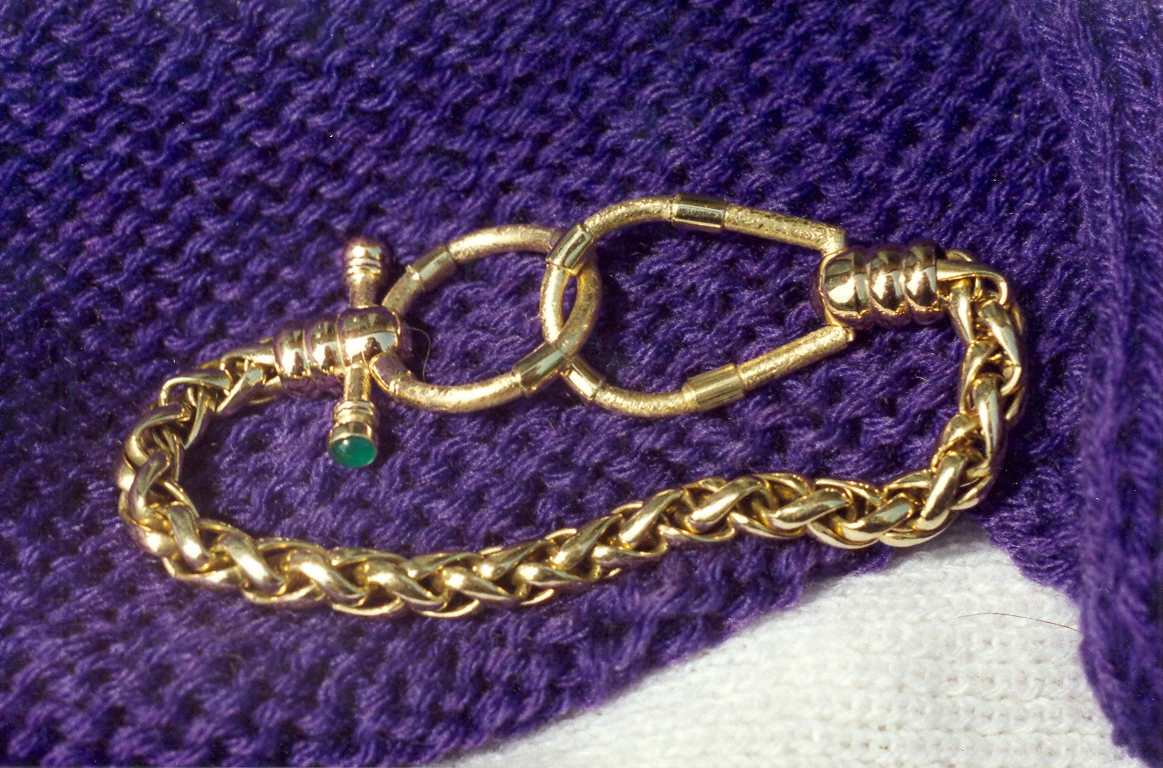 Łańcuch jest zrobiony z jednego kawałka drutu. Projekt to przerobiony secesyjny wyrób z katalogu z dodanym elementem centralnym.