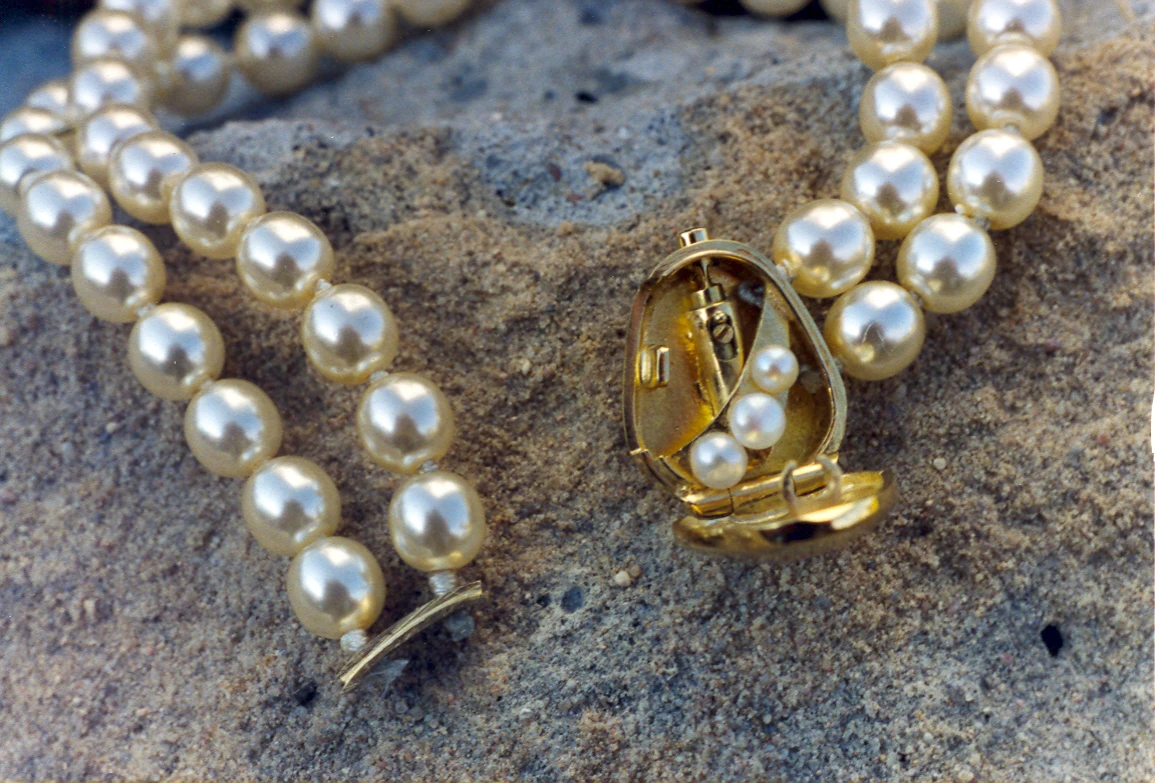 Naszyjnik z pięknymi, naturalnymi perłami, ale minimalnie za krótki. Dzięki zapięciu mojego projektu problem został rozwiązany.