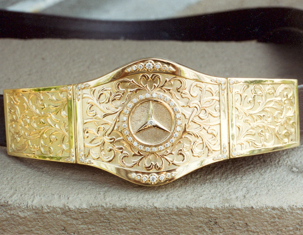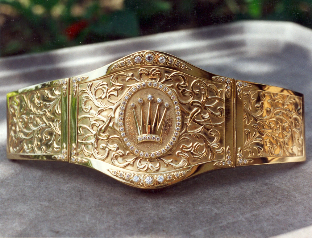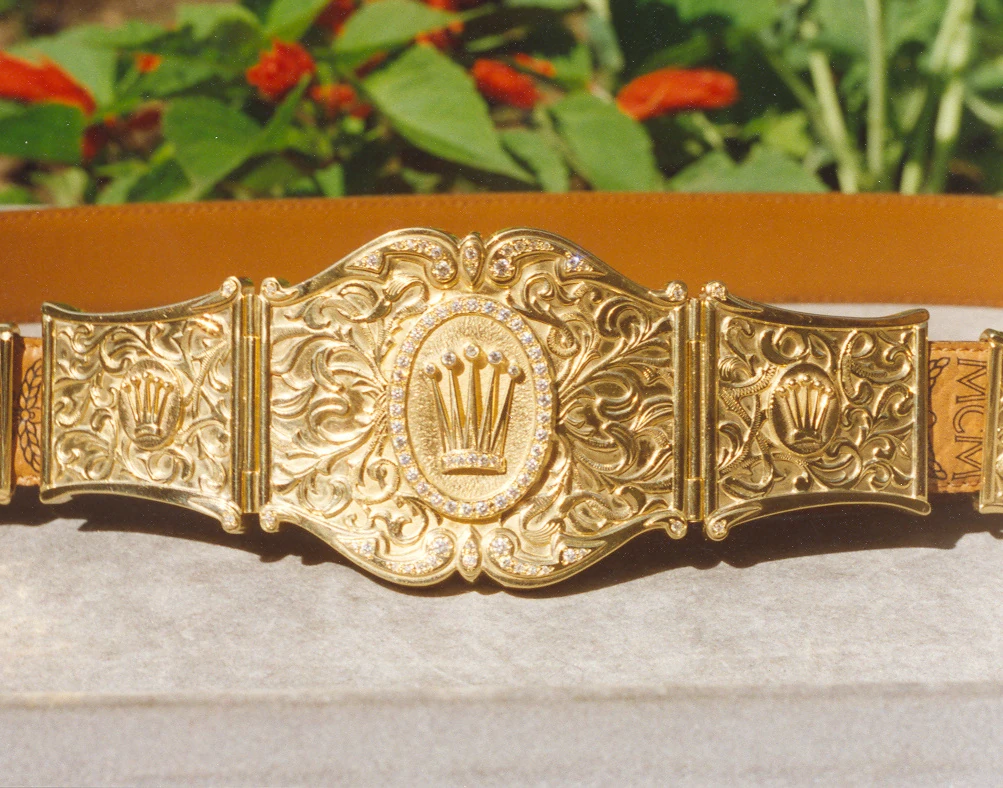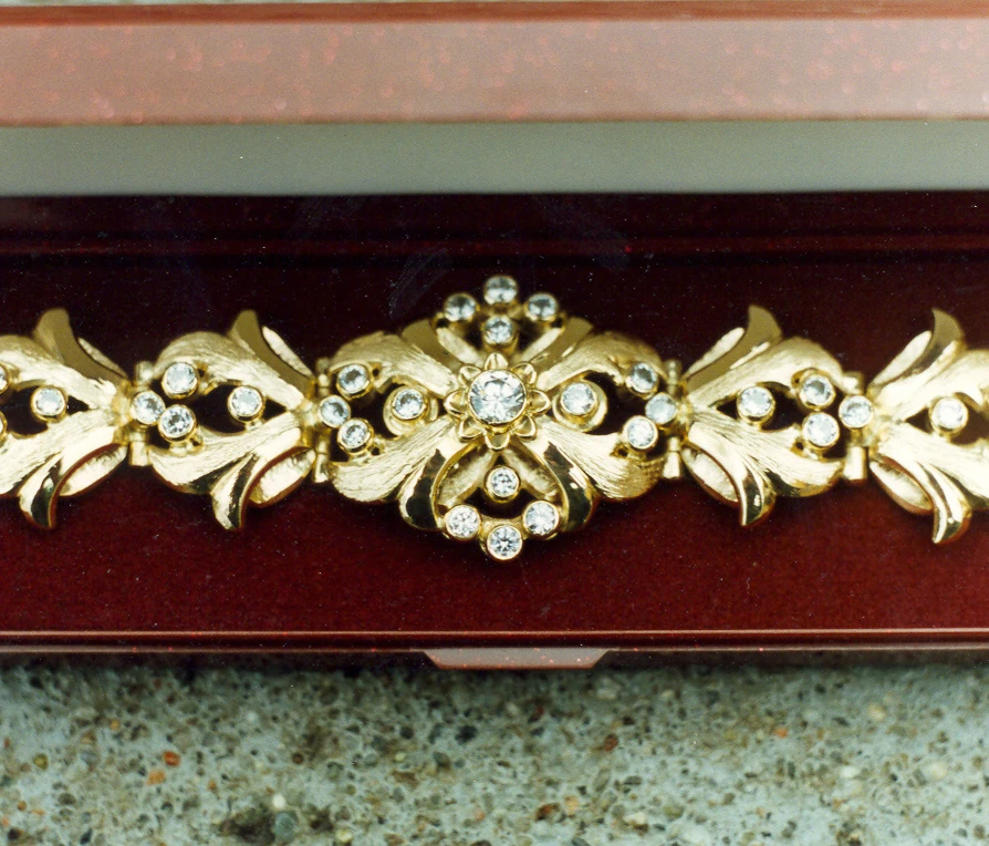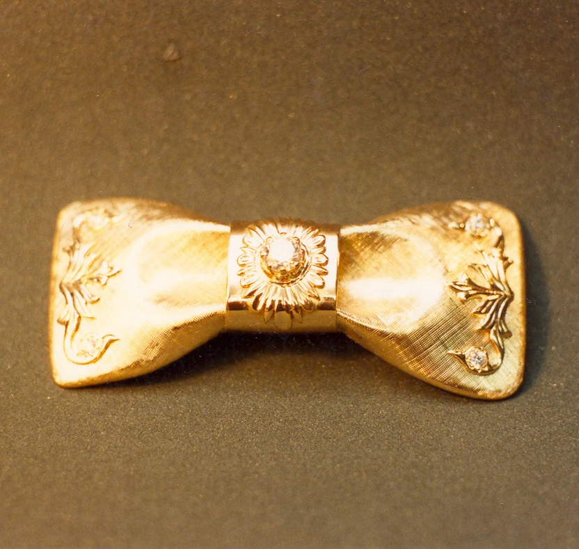 Poszetka została wykonana ze złota, wysadzana brylantami. Projekt własny.