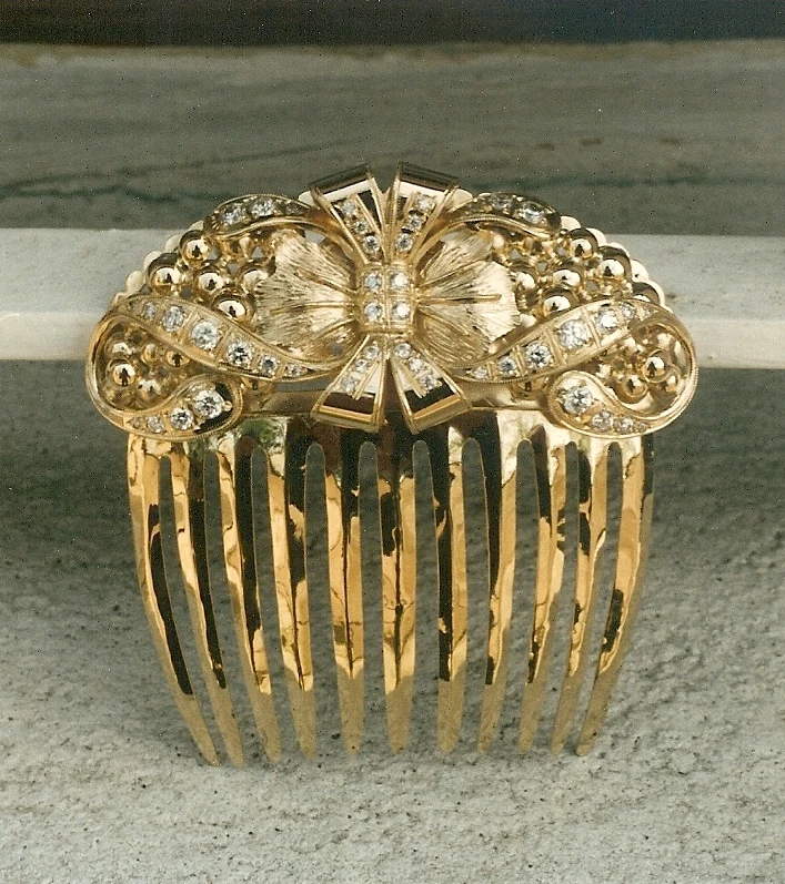 Spinka do włosów, złoto z kamieniami. Projekt z katalogu ale całkowicie zmieniony.