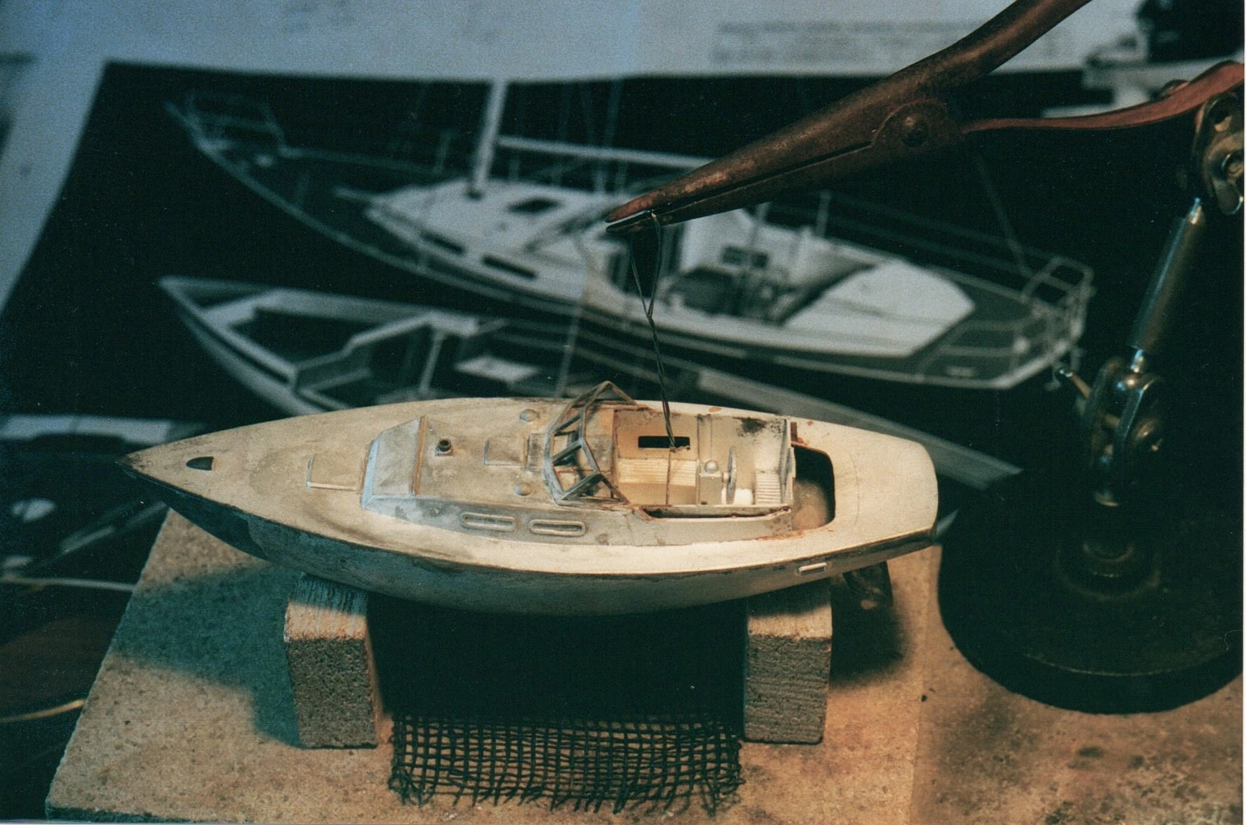 W głebi widać jeden z rysunków według których wykonywałem model, były też plany i przekroje. Dzięki temu model był dokładnym odwzorowaniem oryginalnego jachtu.