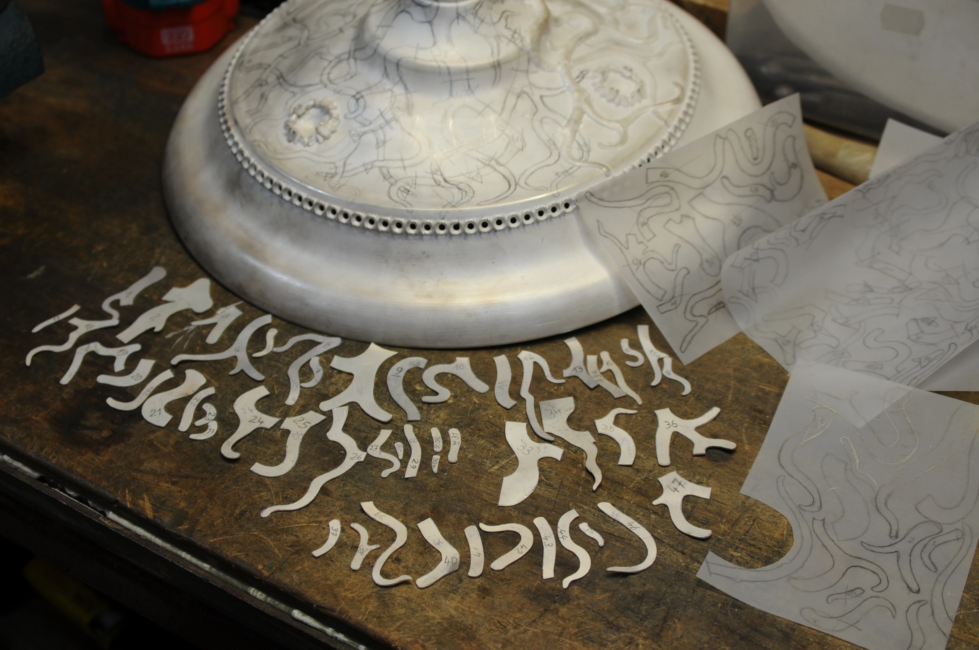 Przygotowywanie elementów według mojego projektu do muglowania czyli w tym wypadku kształtowania wypukłego. Cały motyw winnej rosli składa się z dziesiątków małych elementów.