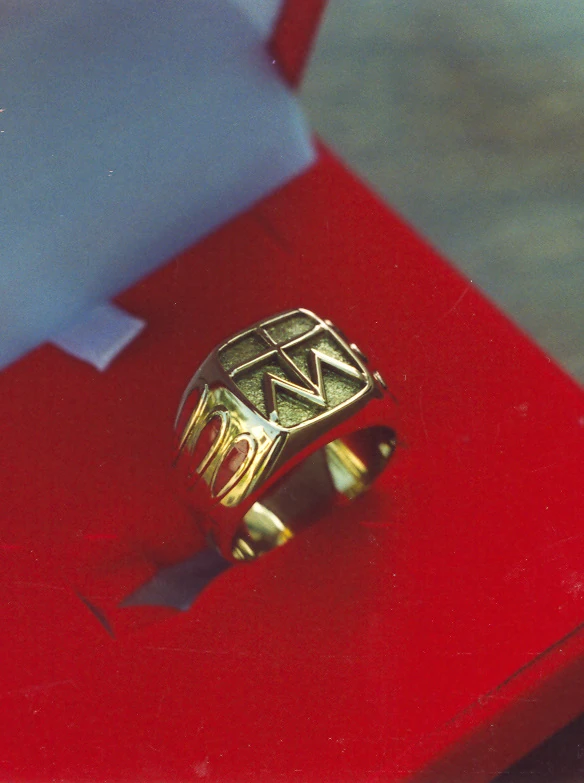 Złoty sygnet biskupi pasujący do krzyża. Projekt otrzymałem od zleceniodawców, wykonanie moje.